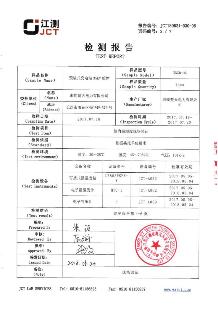 湘能楚天預制艙委托江蘇省江測檢測技術服務有限公司就預制艙的低溫環境的適應性進行現場測試驗證。